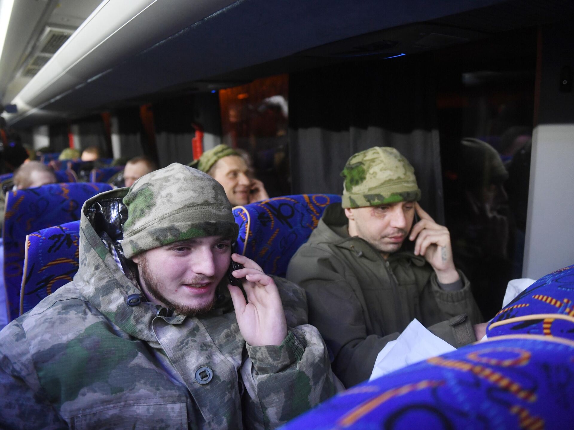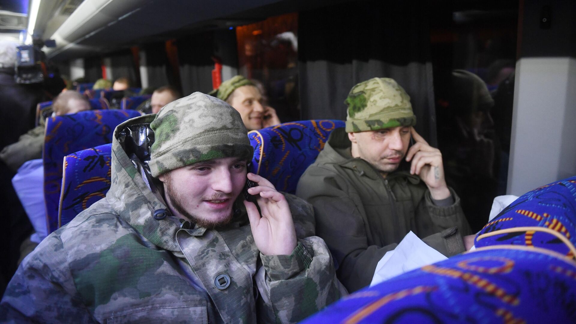 © Sputnik . Kirill Kallinikov / الانتقال إلى بنك الصور إعادة 101 من الأسرى الروس من مناطق سيطرة كييف بعد سلسلة من المفاوضات، مطار تشاكلوفسكي العسكري في ضواخي موسكو، روسيا