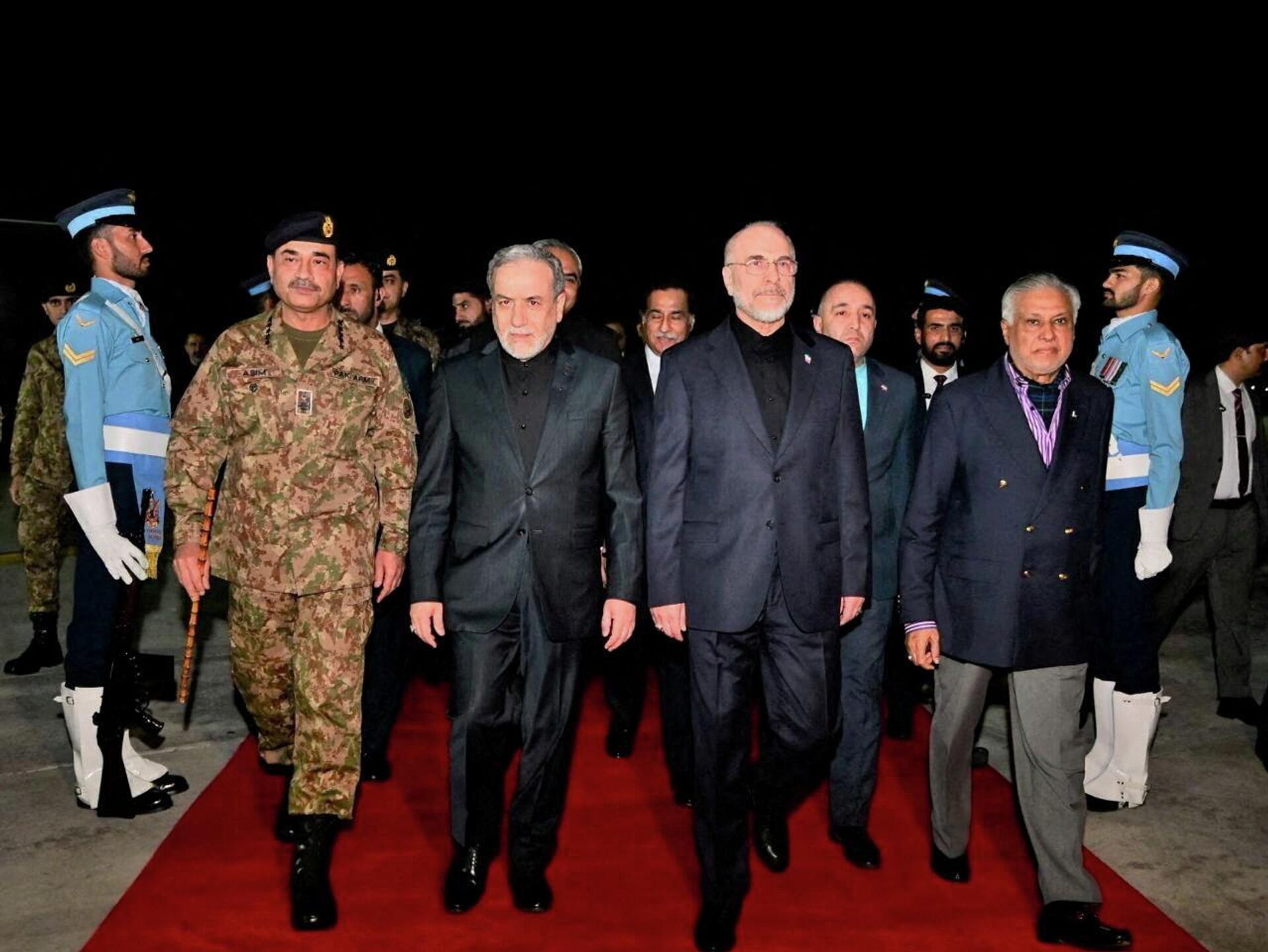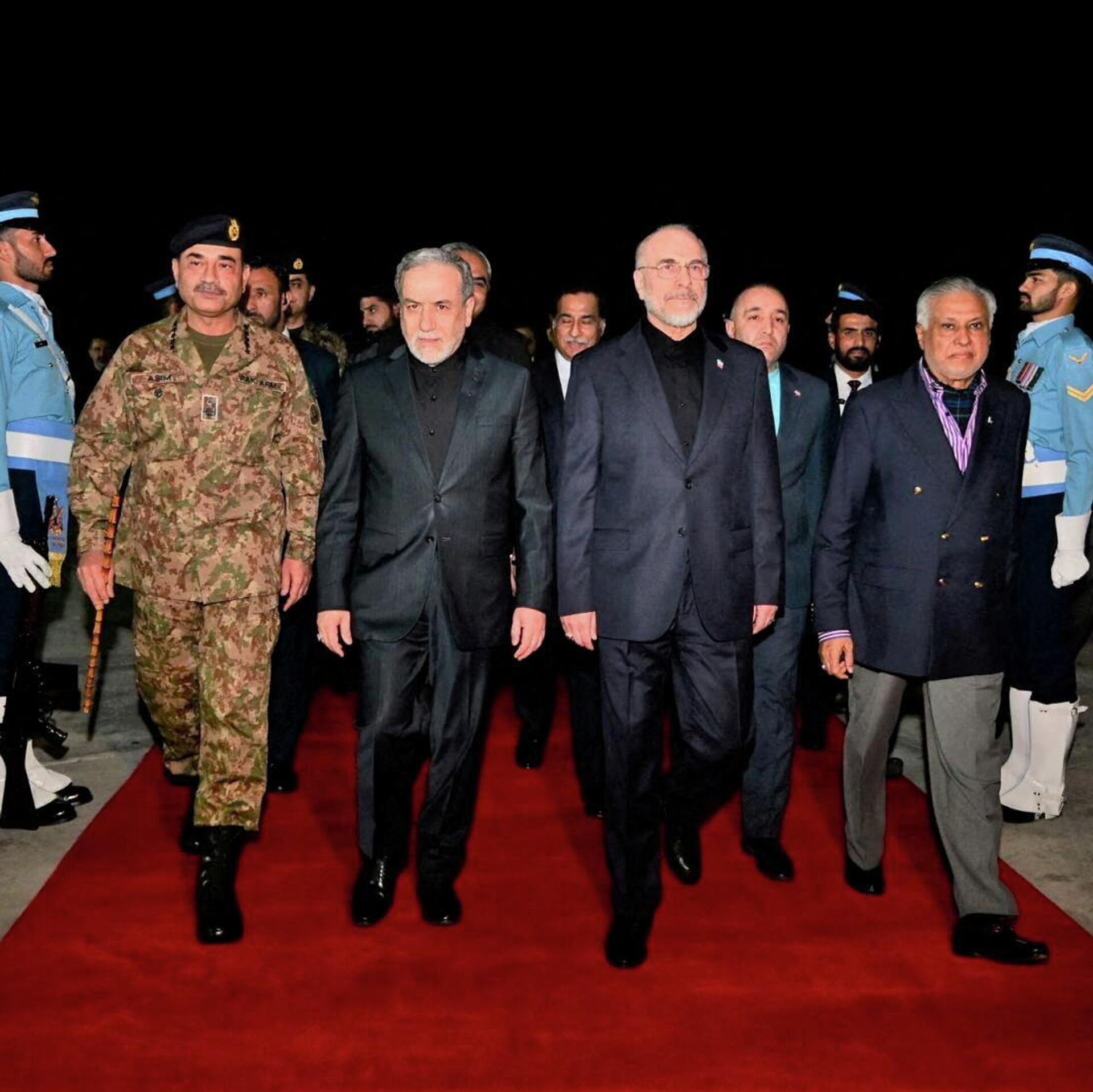 رئيس البرلمان الإيراني، محمد باقر قاليباف، يسير إلى جانب وزير الخارجية الإيراني، عباس عراقجي، لدى وصولهما العاصمة الباكستانية، إسلام آباد، للمشاركة في مفاوضات السلام مع أمريكا، 11 نيسان/ أبريل 2026 - سبوتنيك عربي, 1920, 12.04.2026