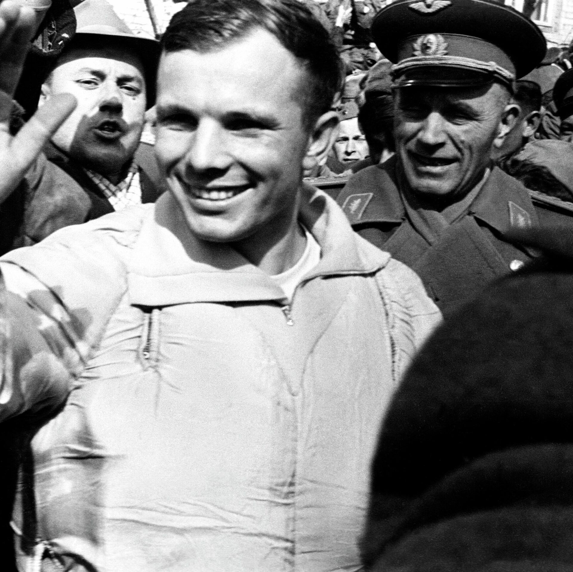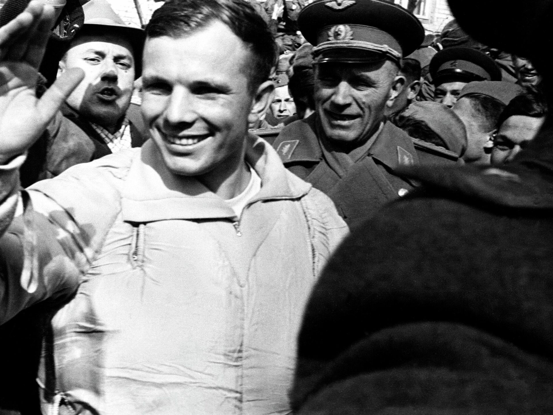 أول رائد فضاء على كوكب الأرض، يوري غاغارين، بعد هبوط وحدة الهبوط الخاصة بالمركبة الفضائية "فوستوك 1".