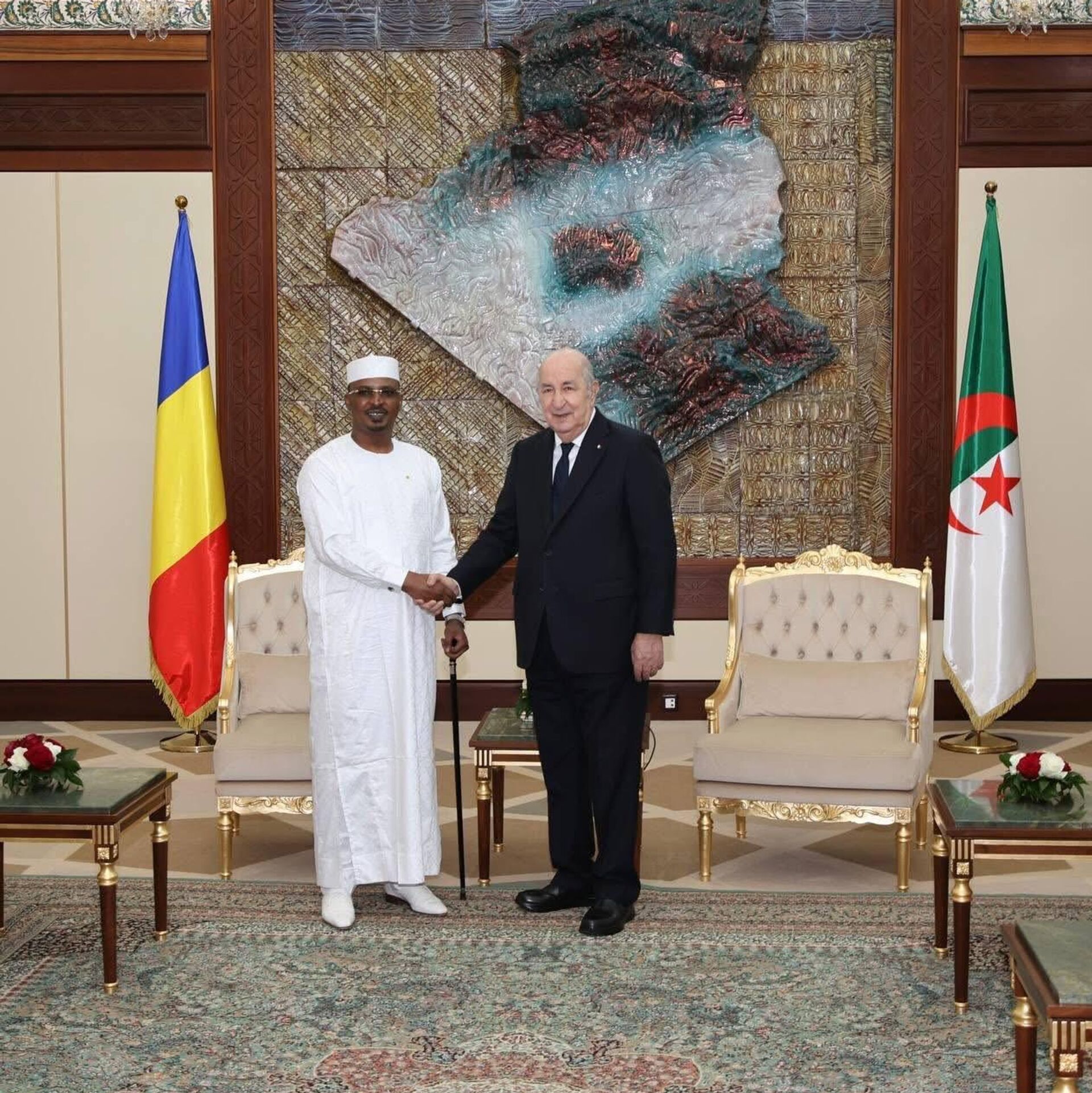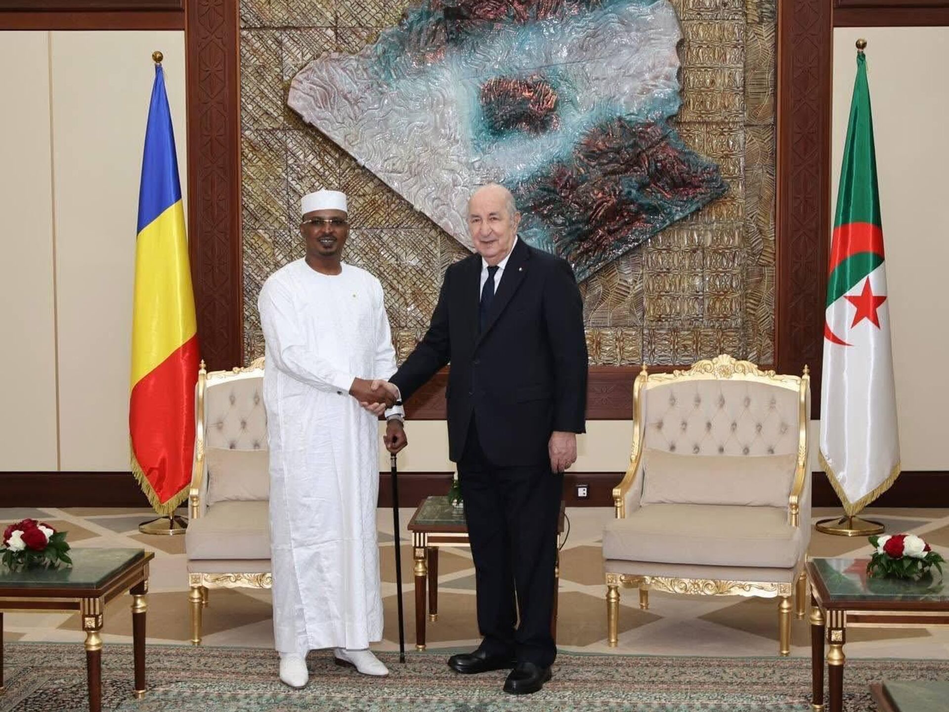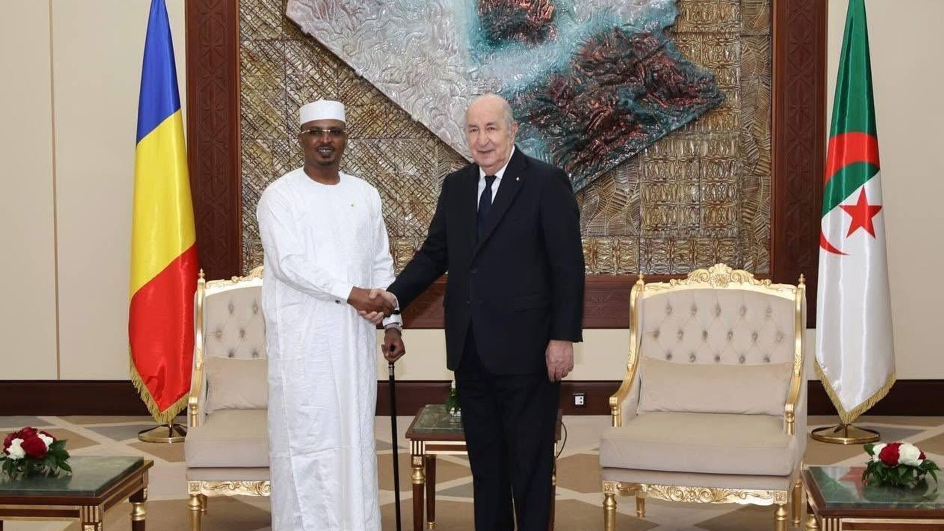 مراسم استقبال السيد رئيس الجمهورية للرئيس التشادي بقصر المرادية، والمباحثات التي جمعت وفدي البلدين