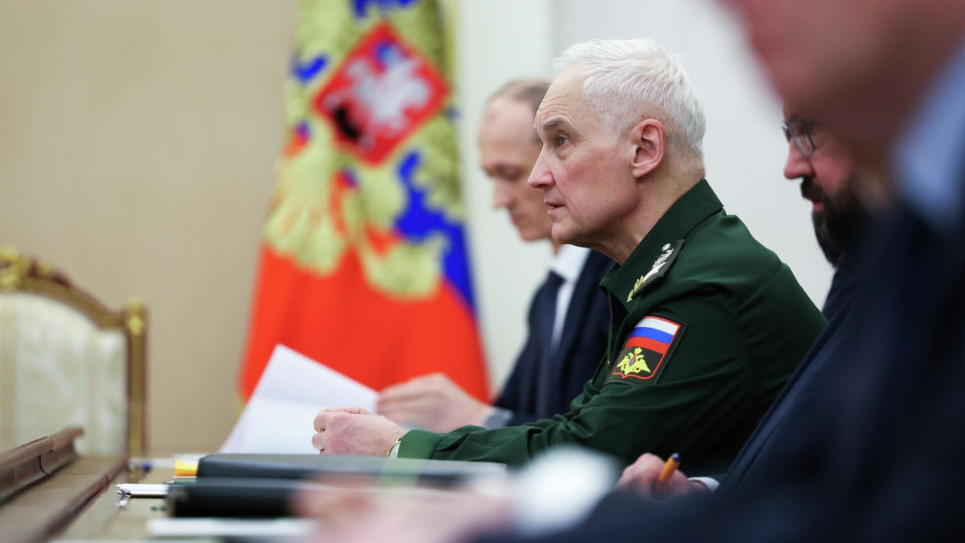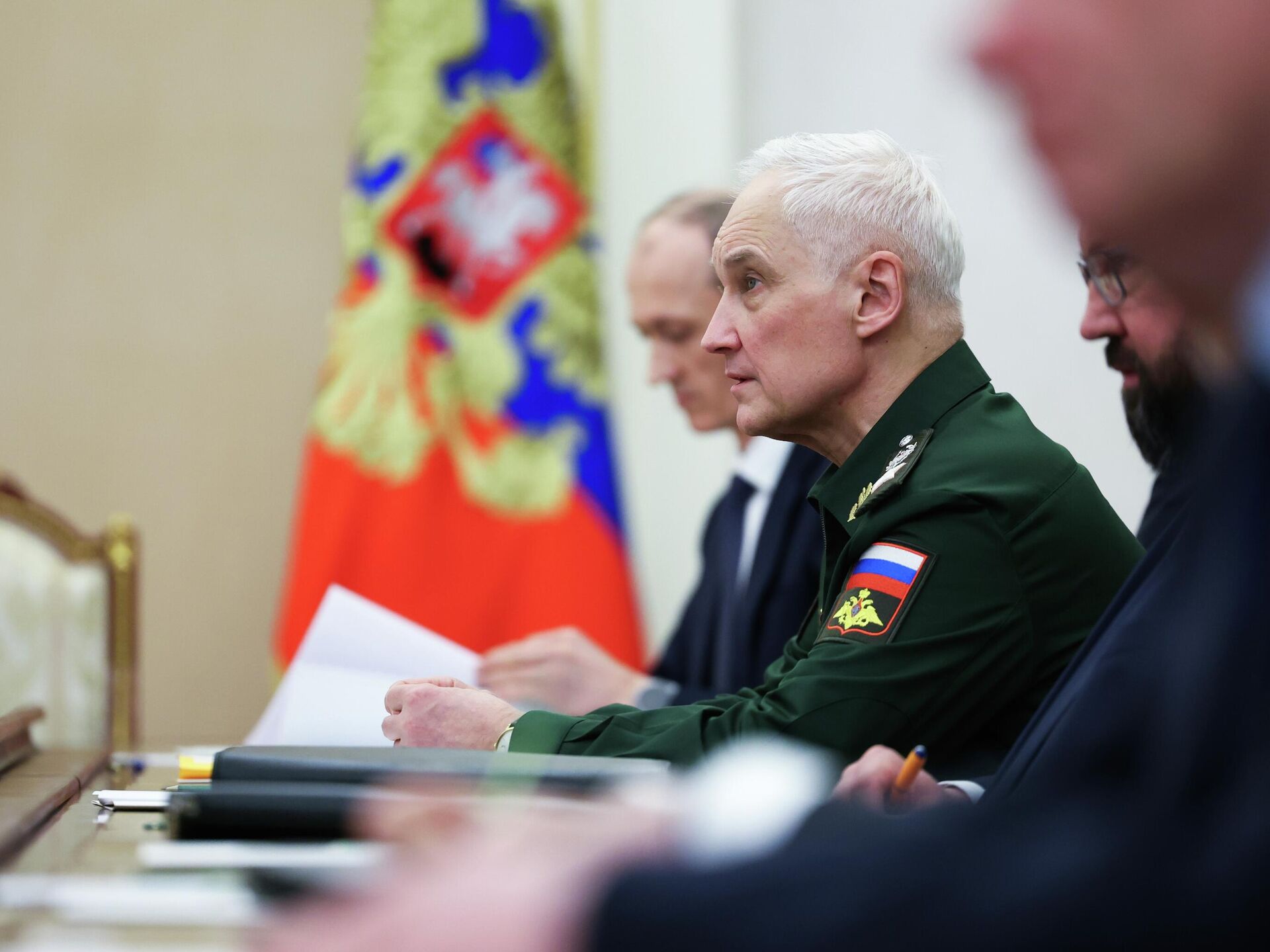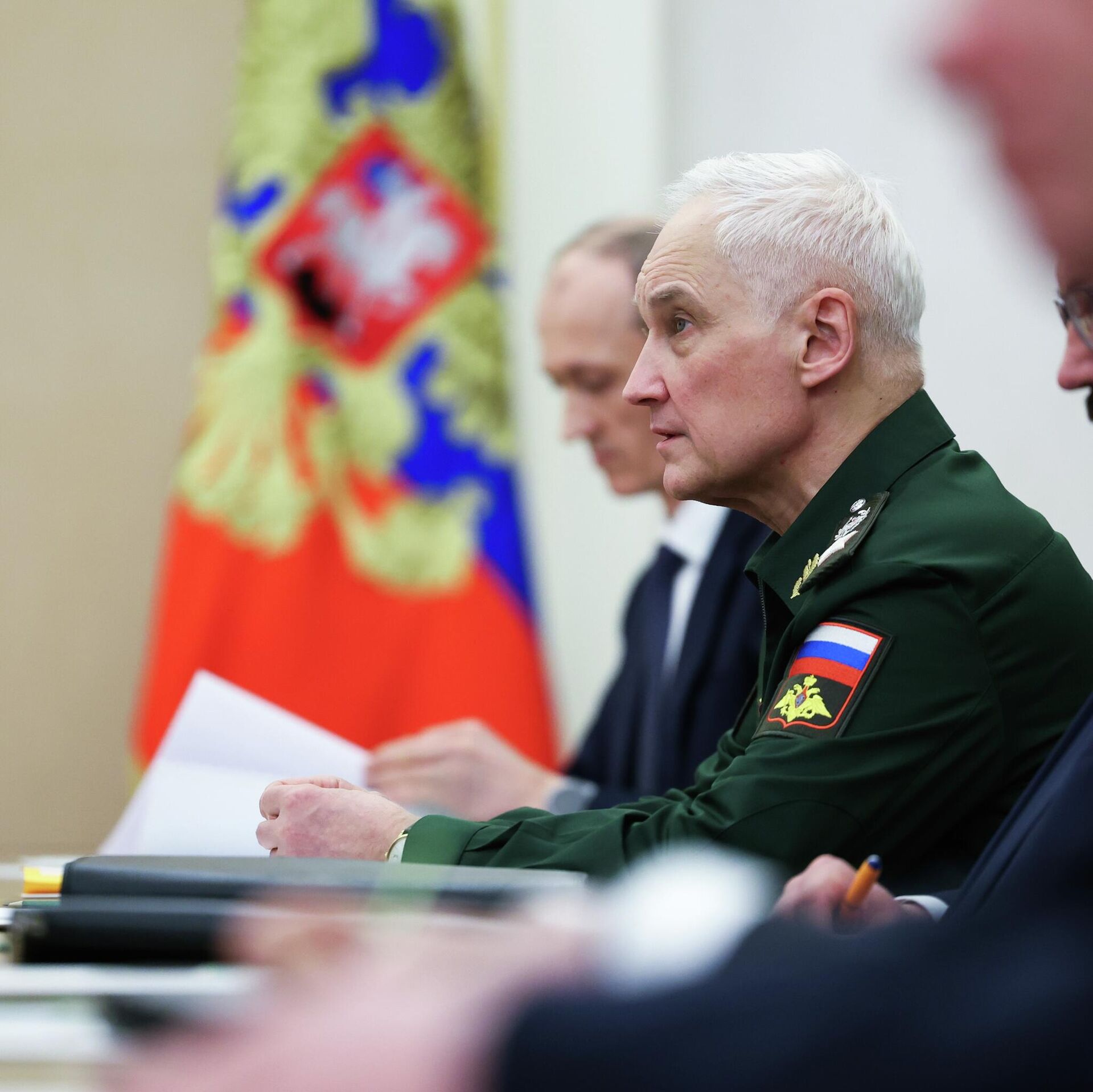 © POOL / الانتقال إلى بنك الصوروزير الدفاع الروسي أندريه بيلاؤوسوف