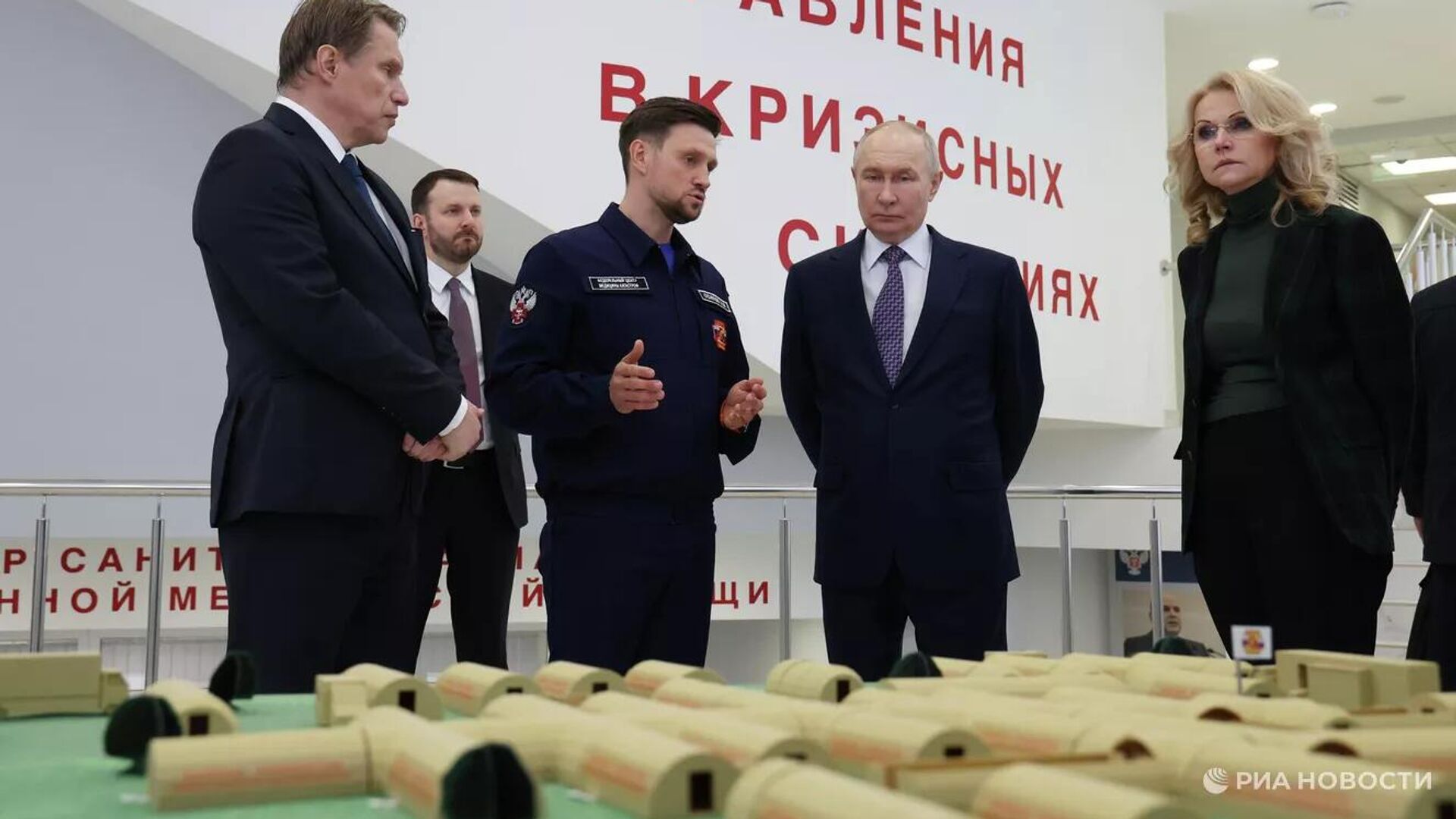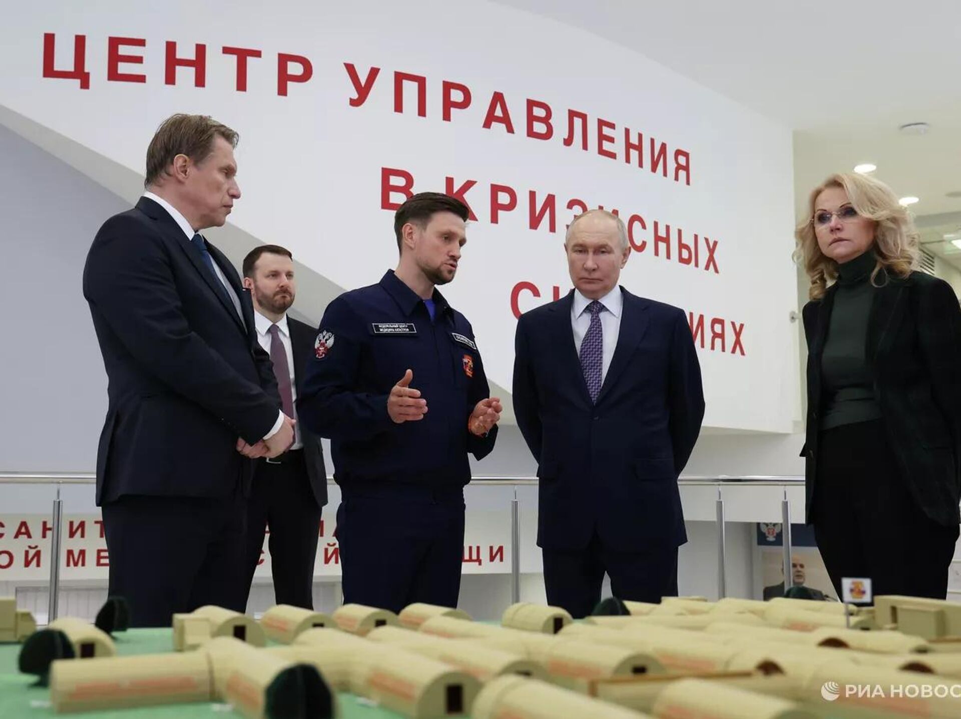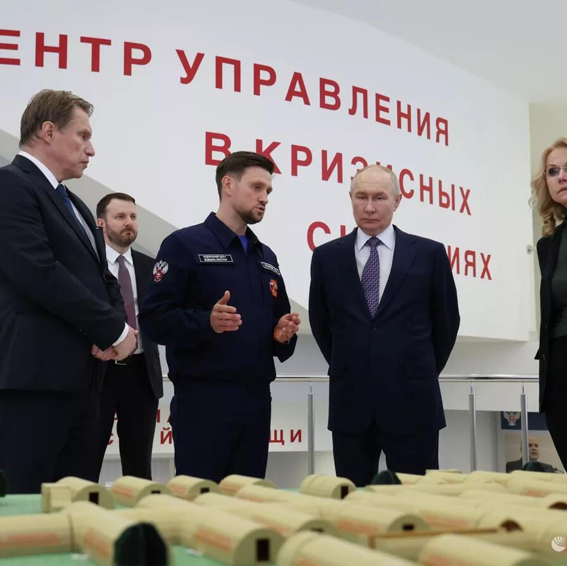 © Sputnikالرئيس الروسي فلاديمير بوتين خلال زيارة إلى المركز الفيدرالي لطب الكوارث التابع لوزارة الصحة الروسية في موسكو.