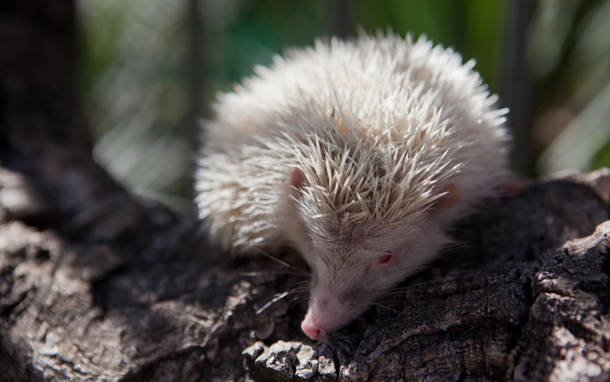 ©Sputnik/Mihail Mokrushin/ قنفذ أبيض، الذي أصبح من سكان حديقة "ديندراري" الجدد في سوتشي